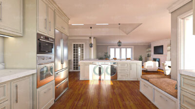 The heart of this project lies in the breathtaking transformation of the kitchen and living area, rejuvenating the old space while maintaining the owner’s distinct tastes. The result is a spectacular and refreshing environment that effortlessly embodies both timeless elegance and modern functionality, standing as a testament to the art of design, respecting tradition while embracing innovation